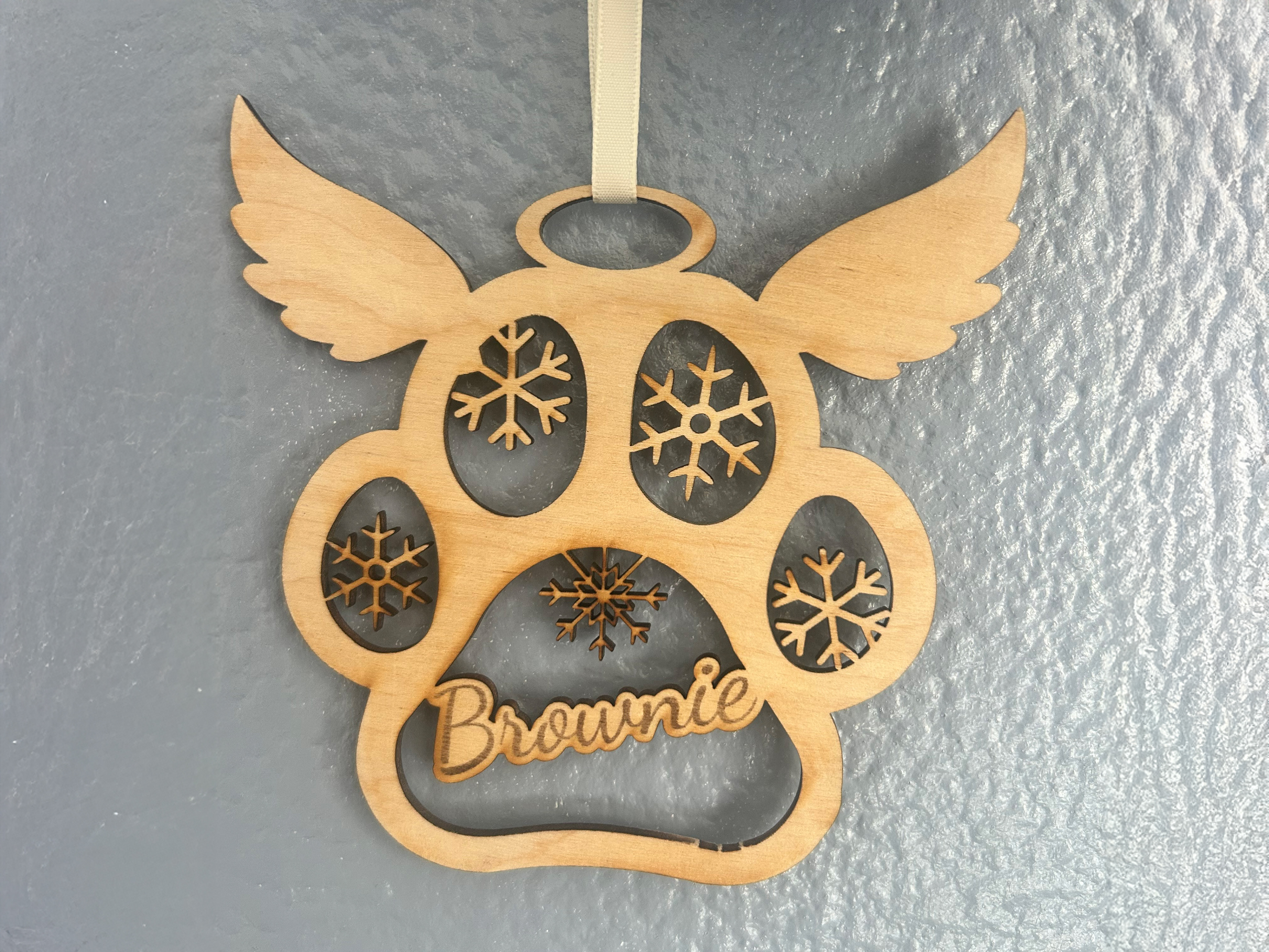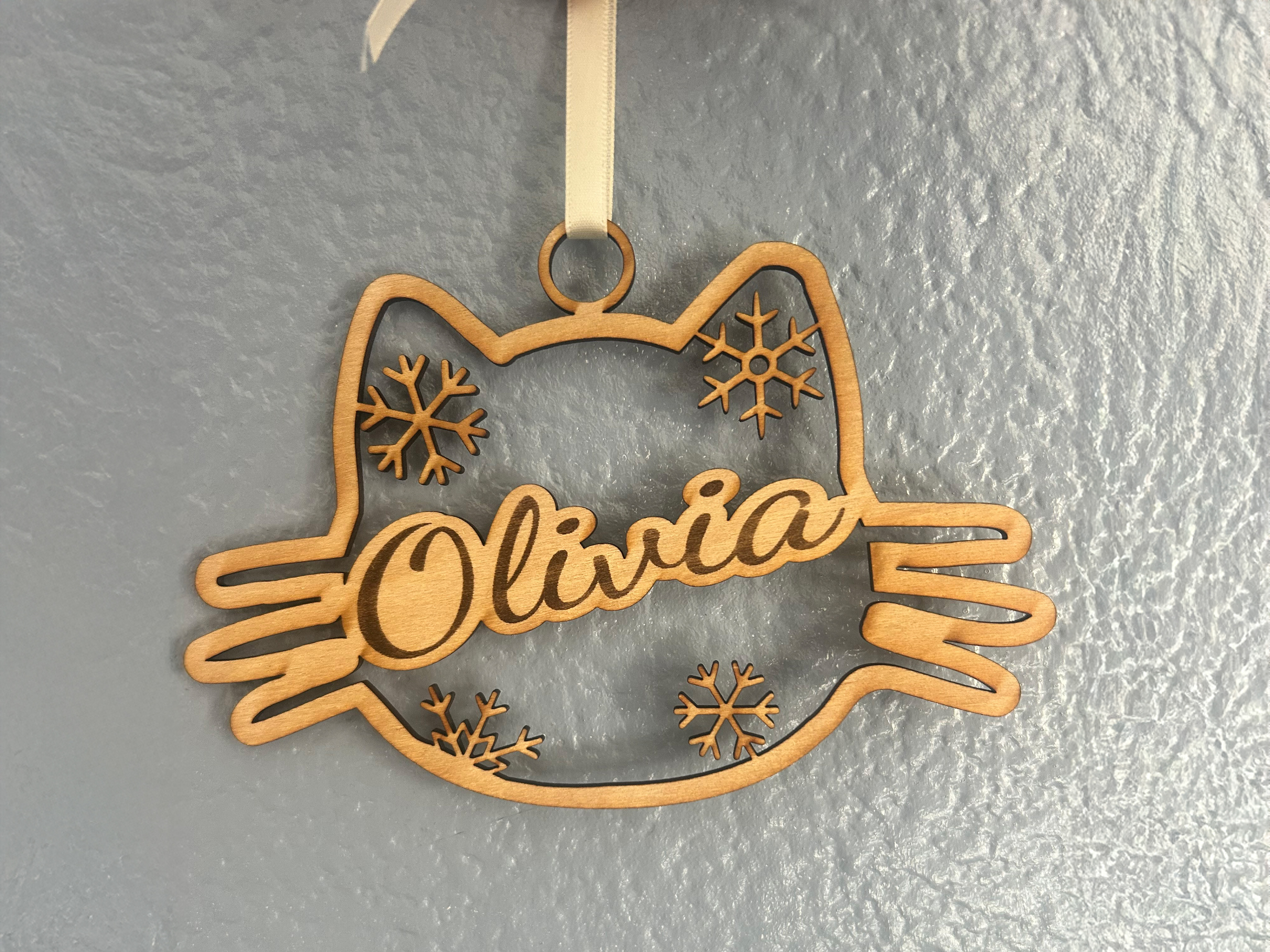 The collection includes designs for cats, dogs, and families, allowing people to customize each piece with the names of loved ones or pets. Every ornament is precisely laser-cut and carefully designed by me, blending craftsmanship with thoughtful personalization.